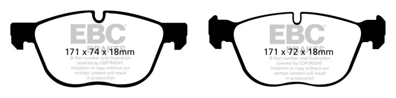 There are TWO reasons our customers love Redstuff, First because they are the lowest dust pad we have encountered by reducing dust by 60-90-percent. Plus the minimal dust you see is very easily removed with a simple sponge wash as it contains no steel fibre particles as in ALL OTHER pads. Second they brake like an alligator right from cold (as good as Original pads or better) and just get better as they heat up.This material is a Synthetic Fiber based brake compound enhanced with ceramic particles. If you have previously tried EBC redstuff (pre-ceramic compound) this material is light years ahead. It lasts longer; it brakes better and is quieter. Being a hard wearing pad, bed-in times can be as long as 1000 miles and drivers must be patient until the pad takes up the shape of their disc (brake rotor). This is a truly impressive fast road pad for repeated heavy braking.It emits far less dust than semi-metallic pads and has been proven to stop a passenger car/sedan/sport compact/hot hatch 13 metres quicker than OEM pads from 100mph/160kph. Features EBC Brake-In surface coating which conditions rotor surface and accelerates pad bed-in. Nominal friction coefficient 0.5 with approx. 50-percent dust reduction.Most EBC Red Ceramic pads are approved to ECE R90 brake safety regulation.
